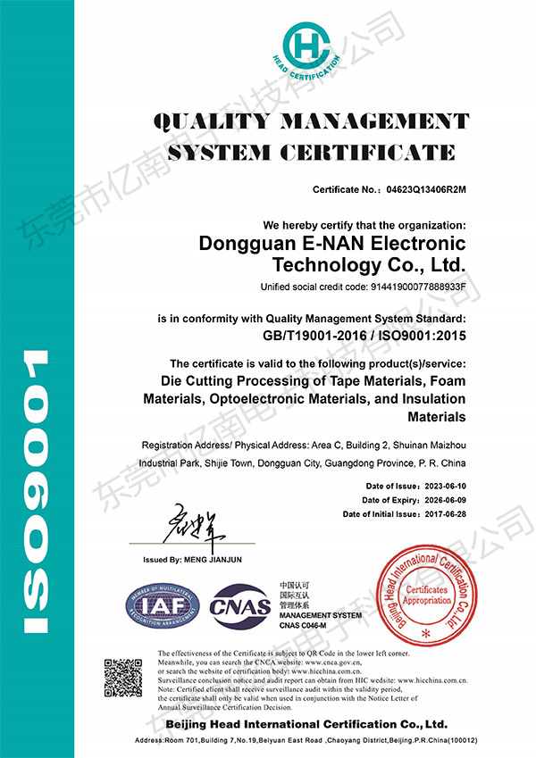 質(zhì)量管理體系認(rèn)證證書(shū)